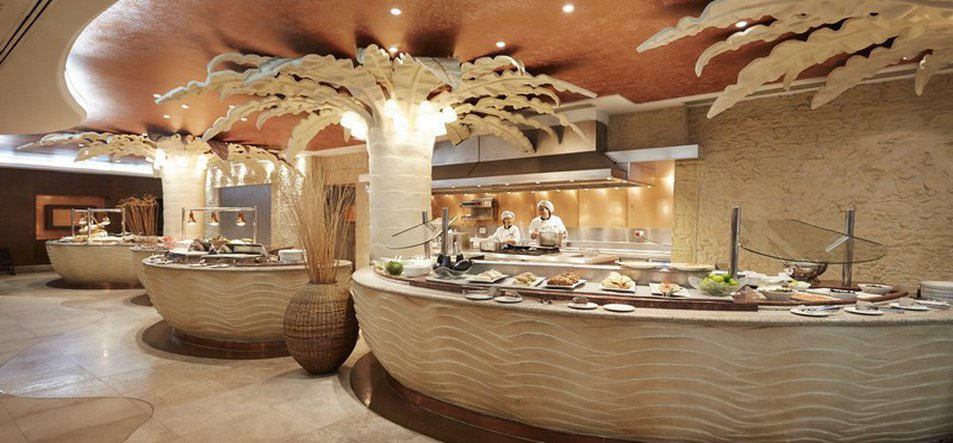 It offers a daily breakfast and dinner service with an extensive and varied buffet, as well as a large selection of fresh products cooked on the spot in its spectacular live cooking.