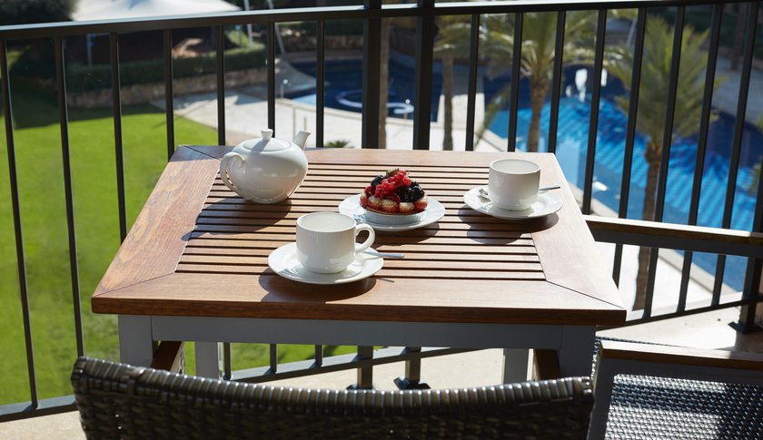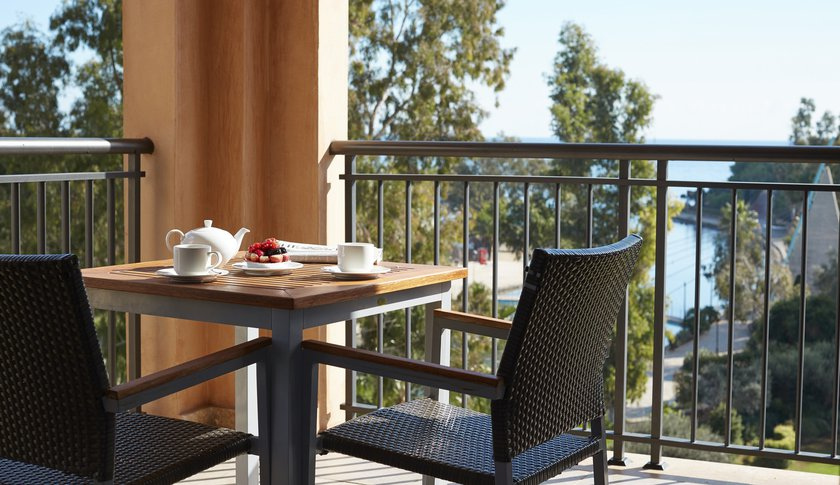 Private balcony with table and chairs.