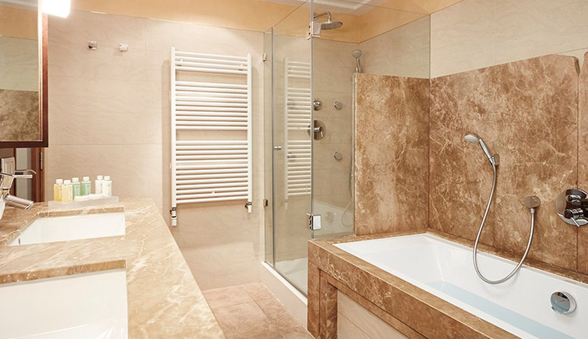 En-suite bathroom with bathtub and a separate hydro massage shower.